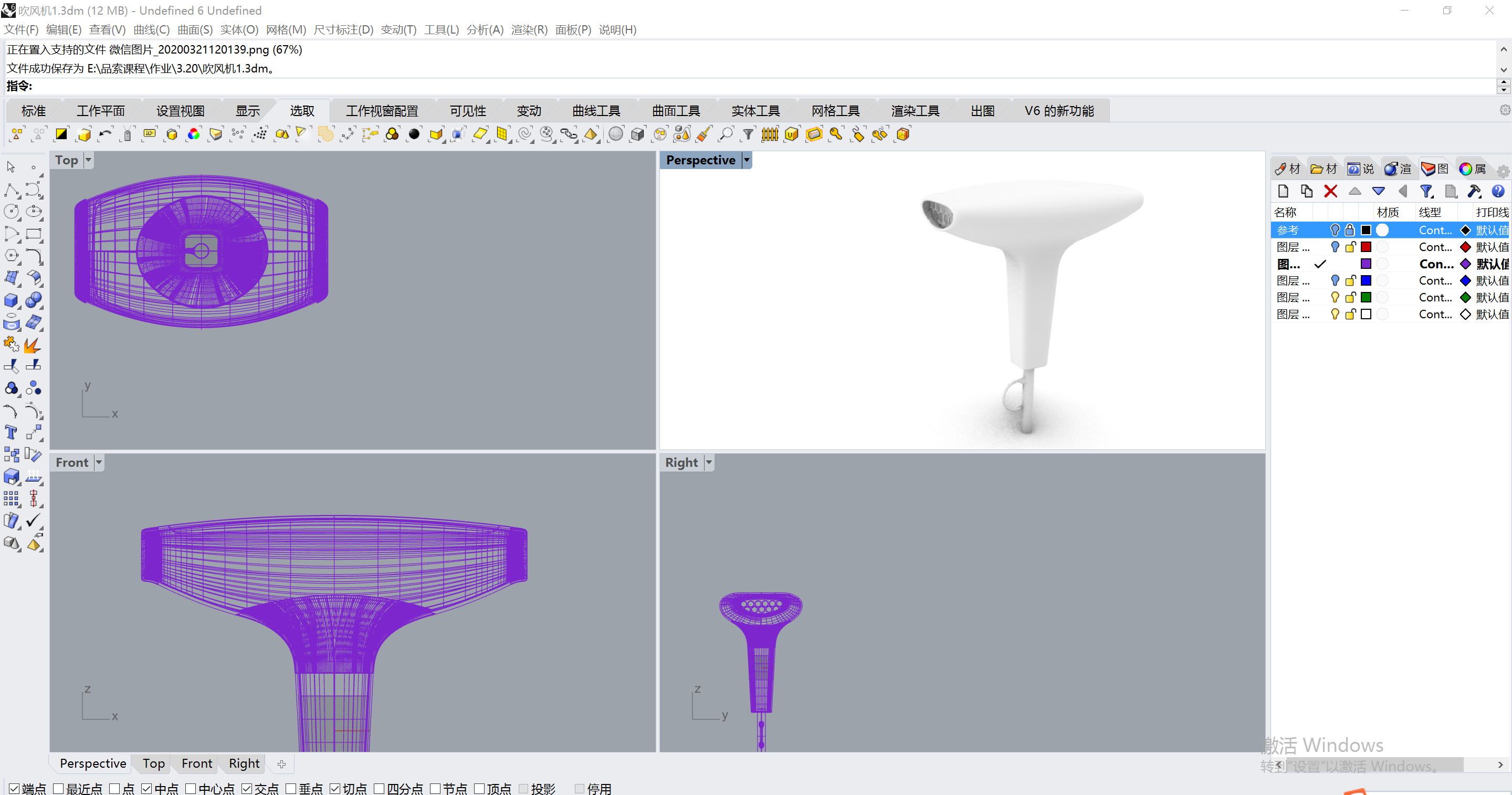 首页 > Rhino犀牛建模渲染实训班 > 吹风机案例